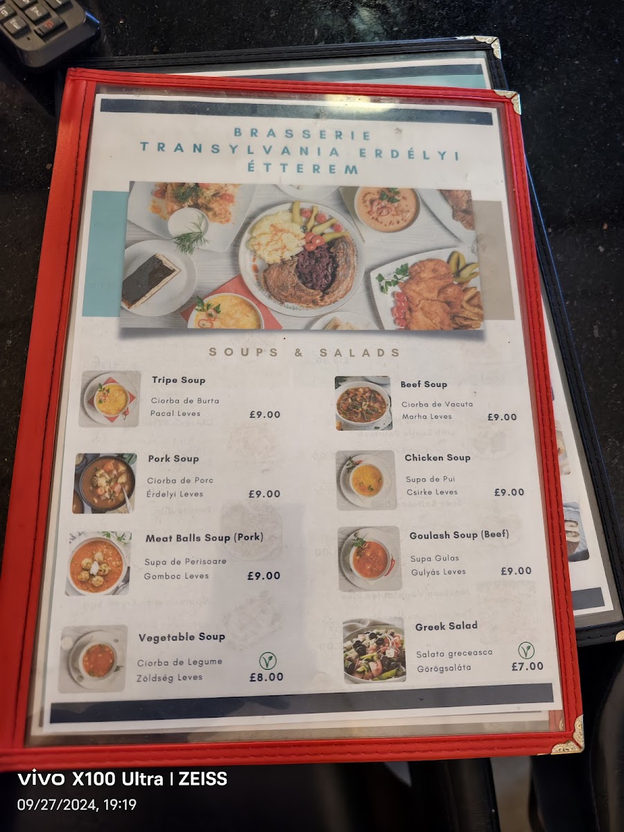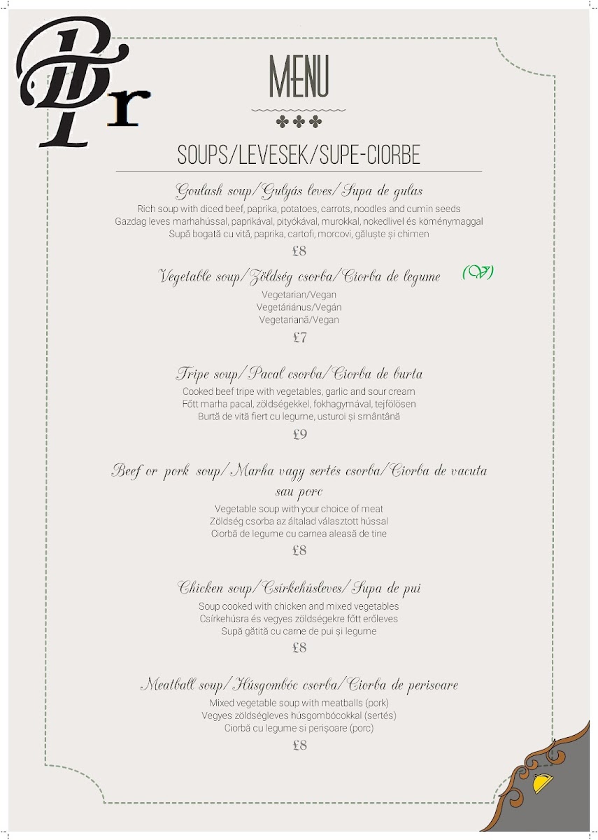 The menu at Brasserie Transylvania Erdélyi Étterem offers a comforting selection of traditional Hungarian and Romanian dishes presented in a relaxed, unpretentious setting. It feels like a place where hearty, home-style meals take center stage, inviting guests to savor familiar flavors that evoke warmth and a sense of heritage.